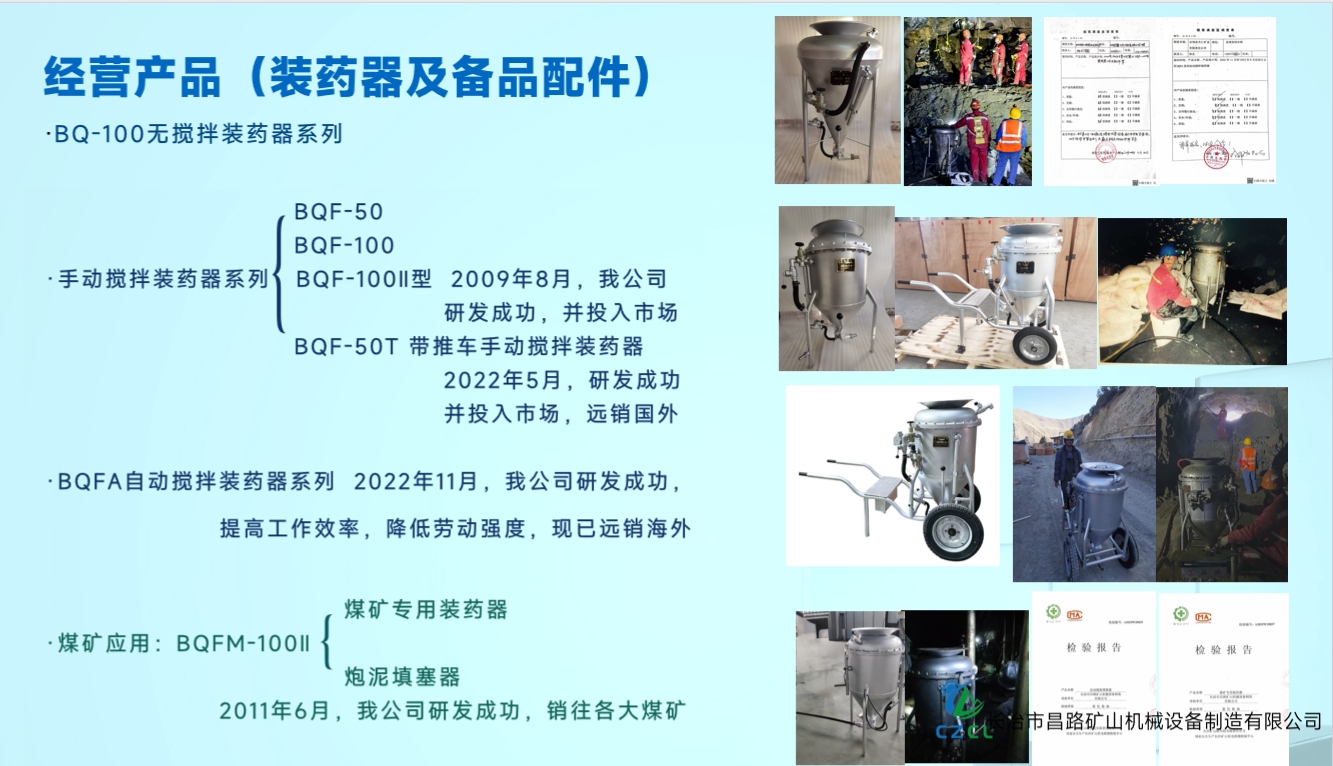 由于井下頻繁裝藥作業,手動攪拌易導致裝藥密度不均,爆破質量也有提升的空間,我公司經過多次實驗,于2022年創新研發BQFA自動攪拌系列裝藥器,在裝藥過程中,搬運方便,減少施工作業時間,裝藥均勻,提高工作效率,降低勞動強度,裝藥器的各項性能得到顯著的提高,在福建某礦山首次使用,得到礦山的大力認可和推薦。